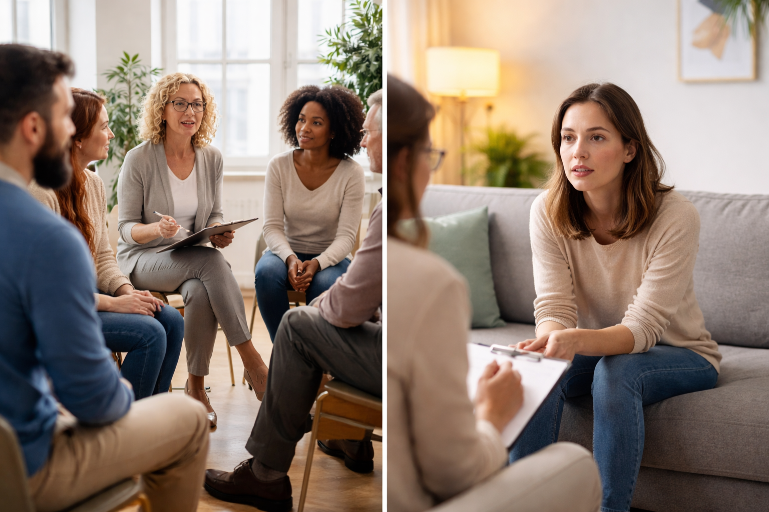 Gruppentherapie ist genau wie die Einzeltherapie ein sehr wirksames Therapieverfahren. Ihre Stärke liegt zum einen in der genauen und gut strukturierten Vermittlung von Wissen über Ihre Erkrankung und deren Bewältigungsmöglichkeiten. Zum anderen dient die Gruppe als Pool von vielfältigen wertvollen Erfahrungen anderer Teilnehmer. Sie können sich gegenseitig bei Erkenntnisgewinn, durch Validierung („Anderen geht es genau so wie mir. Ich bin nicht allein.“) und bei Lösungsfindungen unterstützen.